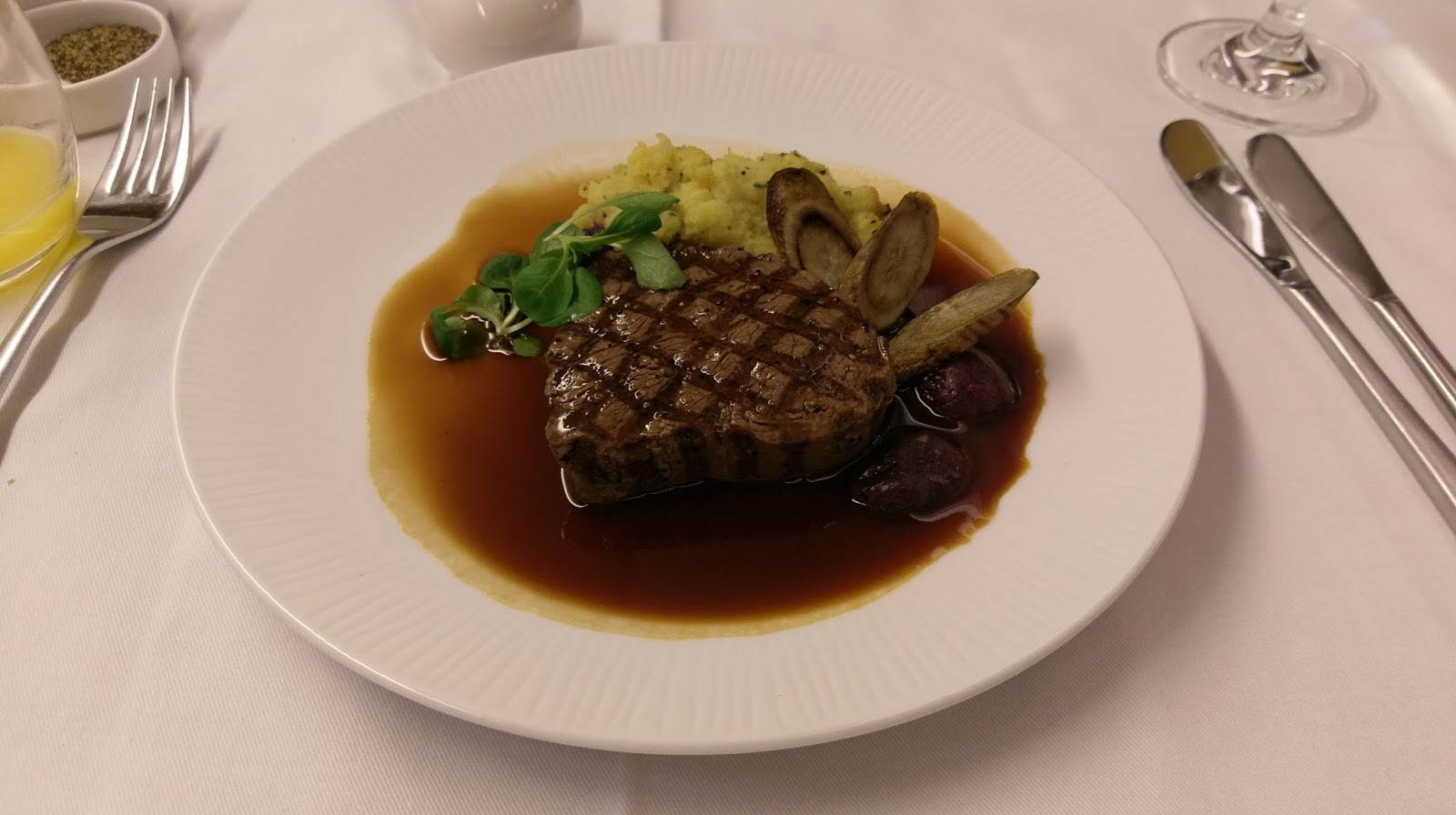 機上餐點我選擇的是牛排餐,這個牛排餐是我在飛機上吃過最好吃的牛排。同時機上供應的是 Krug 香檳,喝起來非常順口好喝。