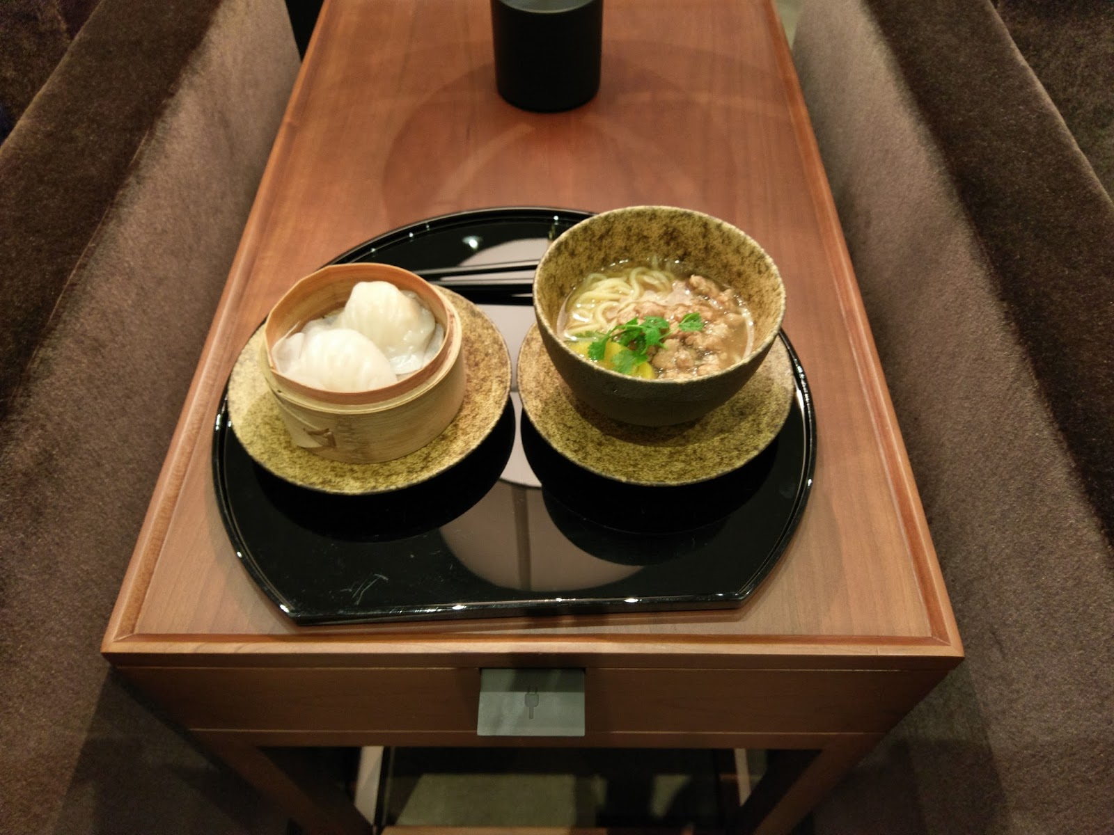 國泰航空的商務艙是反魚骨造型的座椅,可以平躺,睡起來也蠻舒服。這一段航程也會發送過夜包給溫哥華上機的乘客。不過因為時間很晚了,所以就只喝了杯酒,沒有再吃機上餐點。