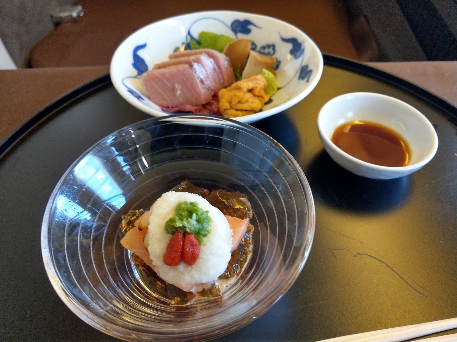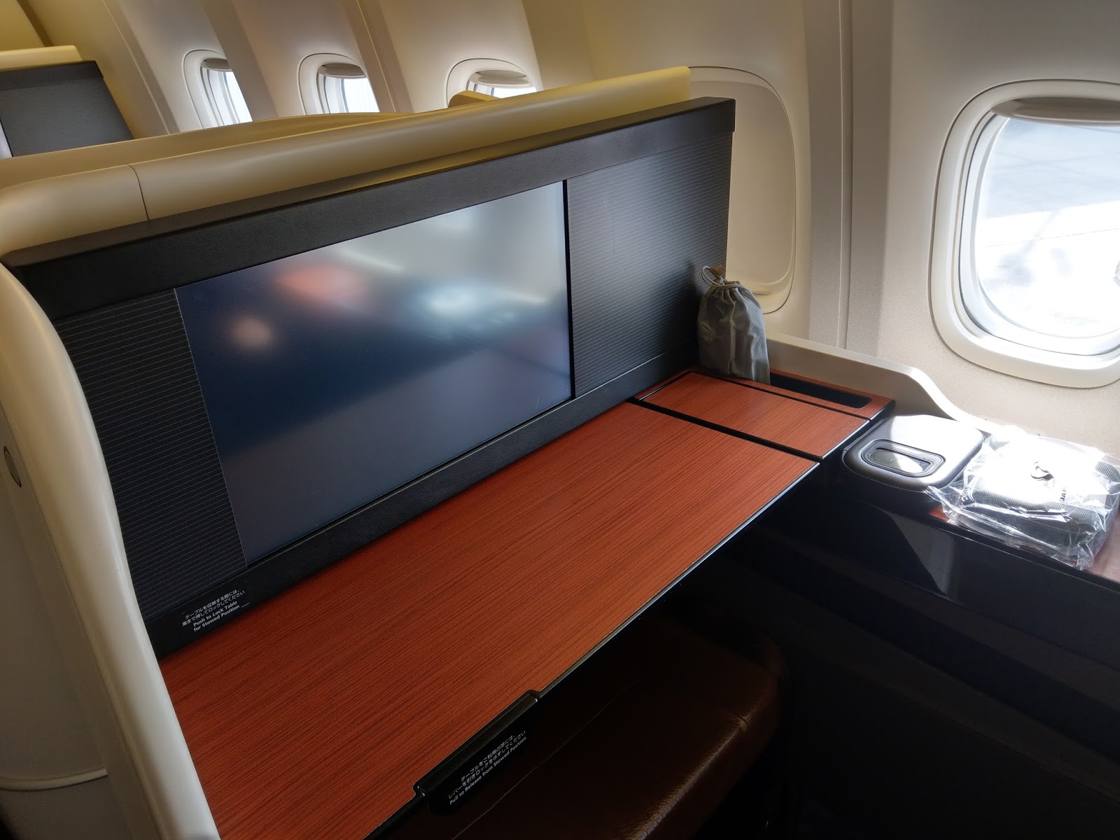 日航頭等艙的飛機不是很新,但是服務都很到位,既然從紐約出發沒有法子點龍吟套餐,食物也是一般,可能之前期待太高,所以登機之後,反而心中有點失落。