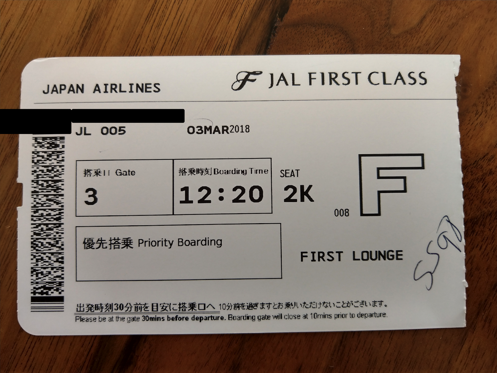 第二次搭日航頭等艙,不過是第一次搭紐約東京長程洲際線,拍下登機證留下做紀念。